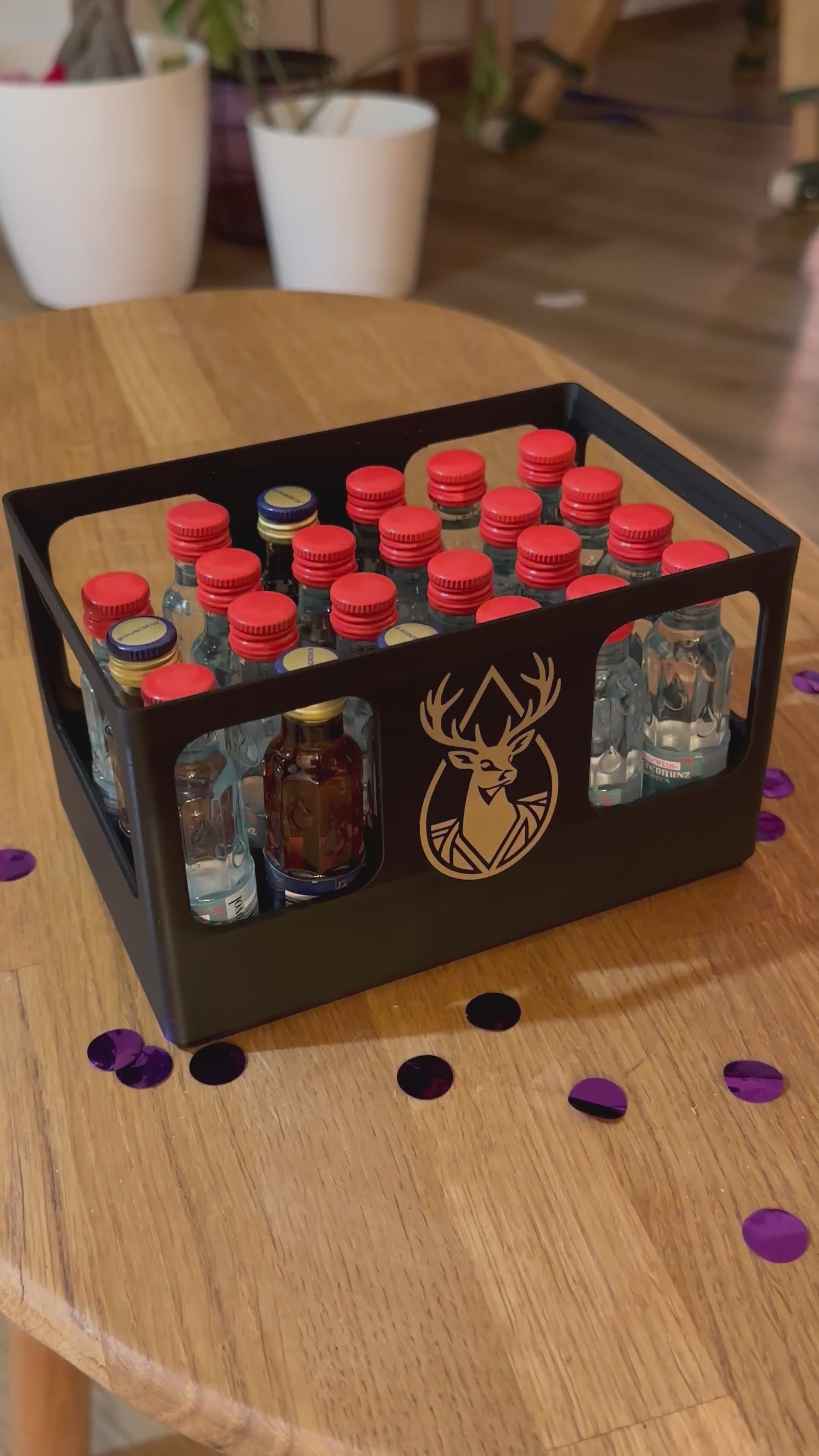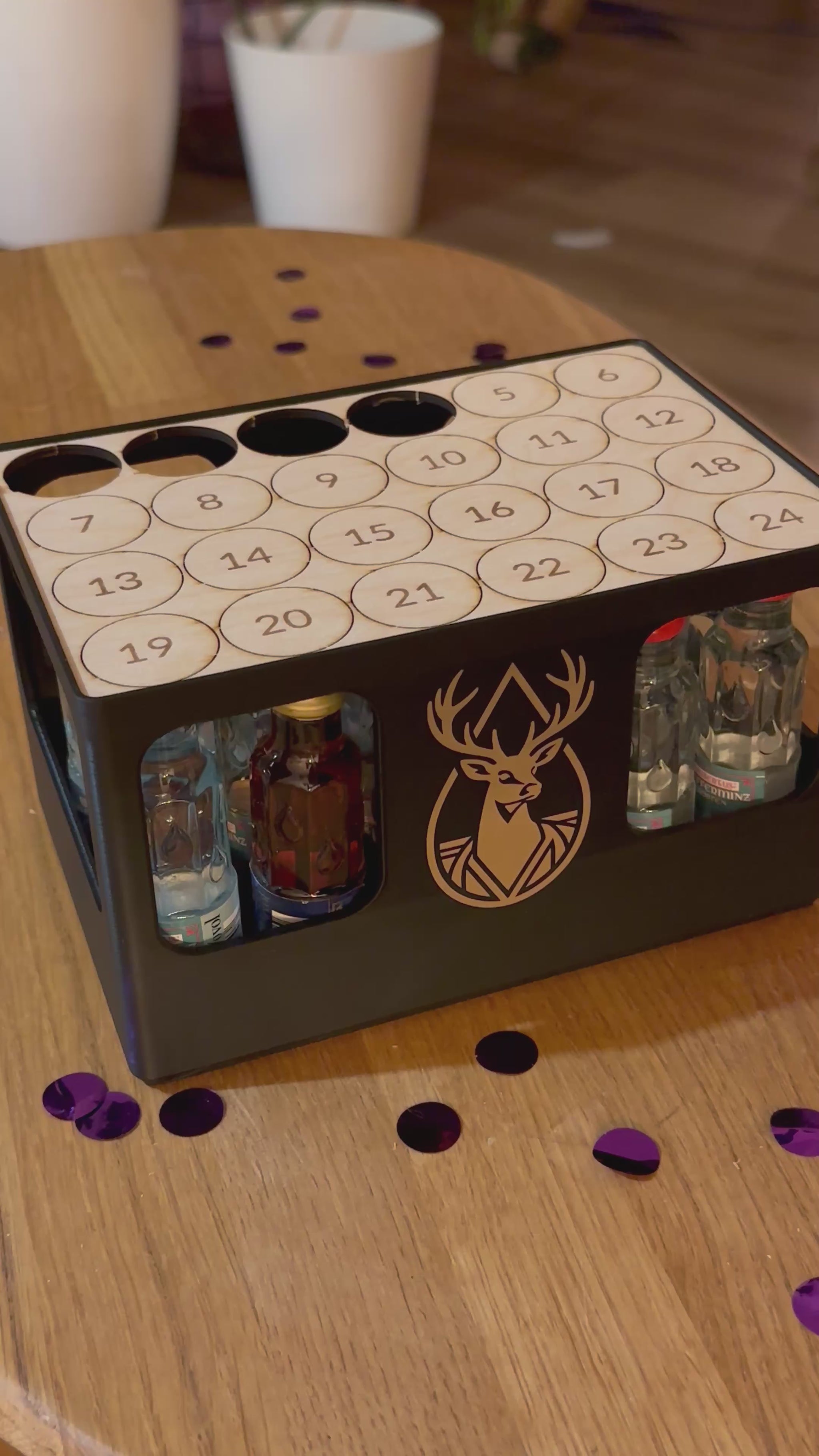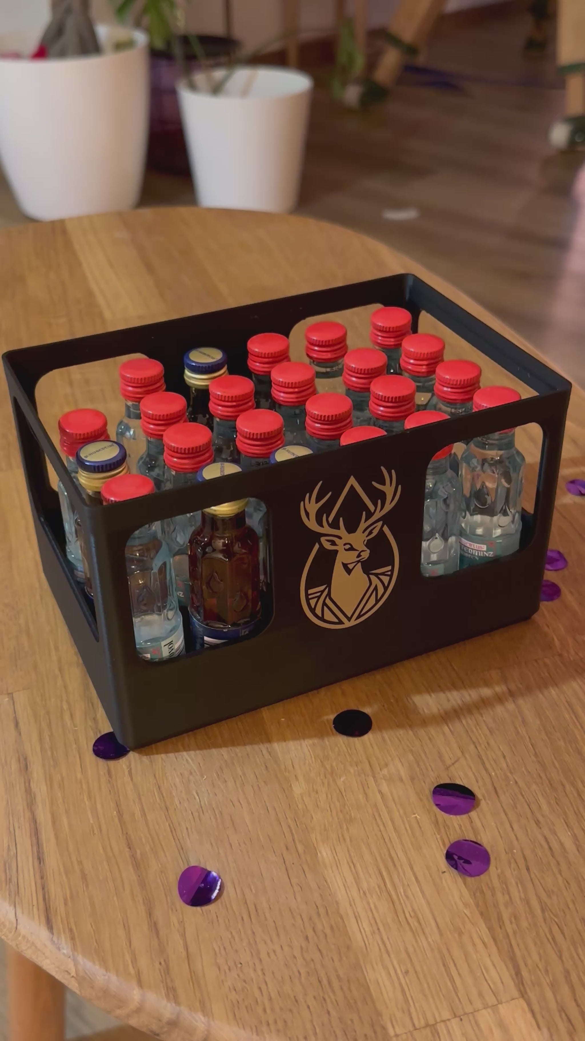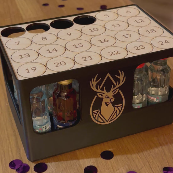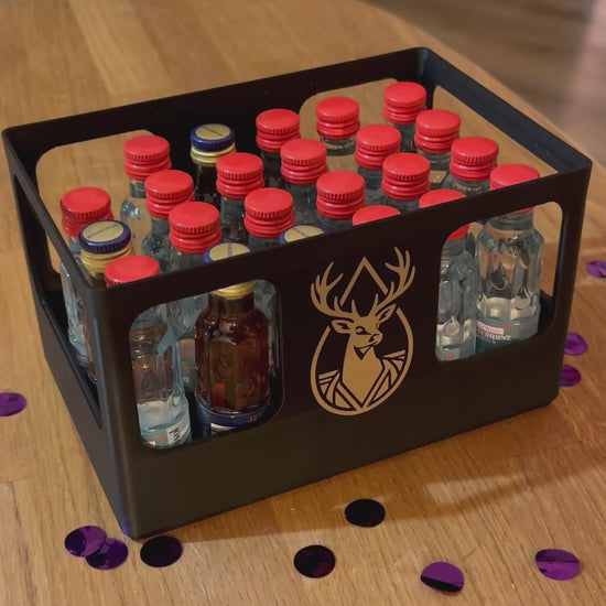 Geschenkbox für 24 Schnapsflaschen – stapelbar & personalisierbar